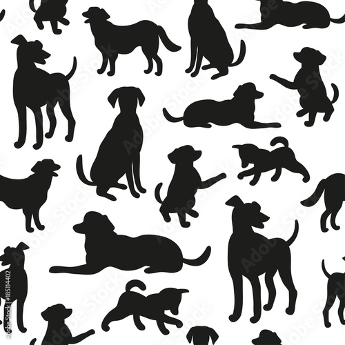 Seamless pattern with dog silhouettes. Texture for wallpaper, fills, web page background.