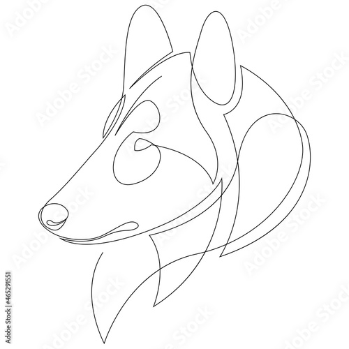 Line drawing Rough Collie Dog tattoo. Vector Illustration. Free single line art of Long hair Dog Breeds. Continuous outline drawing of dog. Pets one line hand drawing. Minimalistic Line Icon