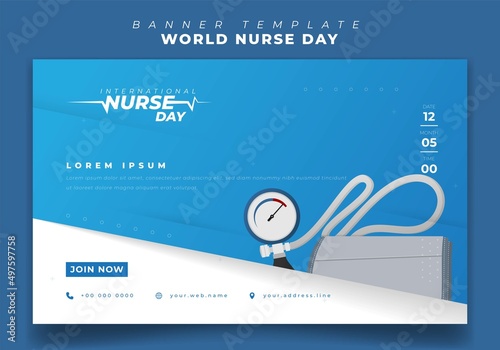 National high blood pressure education month banner. Red background vector design with gauge pump graphic element.