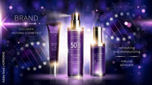 Ad of cosmetic and sunscreen cream. Vector illustration.