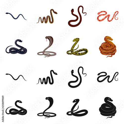 python, set of snakes outline vector illustration, coloring book