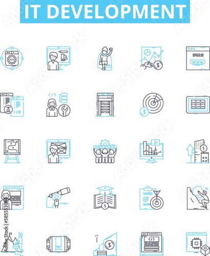 IT development vector line icons set. IT, development, software, coding, engineering, program, web illustration outline concept symbols and signs