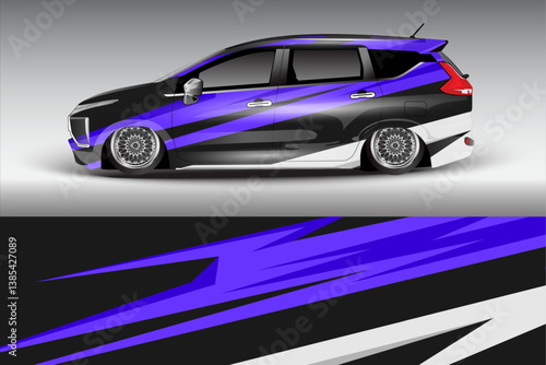 Stylish modified car with sleek purple and black design, showcased against a gradient background