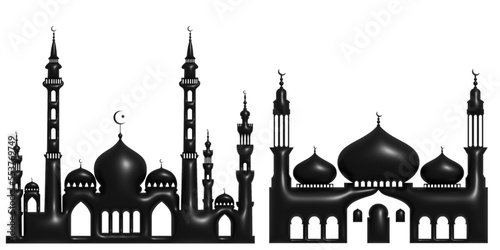 Vector islamic mosque black silhouette. Ramadan muslim icon isolated on white. Arabian mosque building shape with minarets. Eid Al-Fitr illustration
