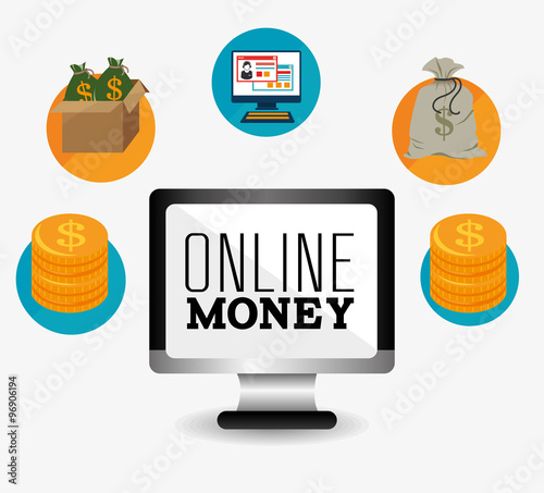 Fast money transfer, withdrawal and deposit via the online web. Set icons. Isolated vector illustration.