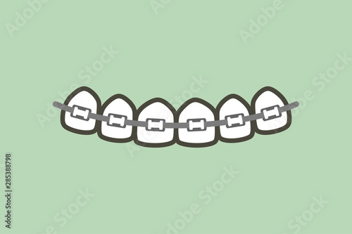 A stylized vector illustration of human teeth with dental braces, representing modern orthodontic treatment and oral health care.