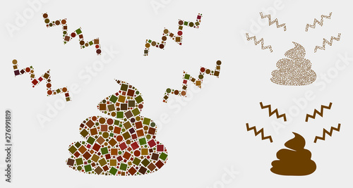 Stink. Unpleasant smell. Dung flies. Green waves stench. Scenery of the garbage dump. Flat illustration
