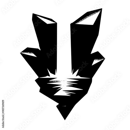 Abstract Waterfall and Rocks Illustration: Geometric, Minimalist, Modern, Grey and White