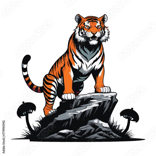 Vector of a colorful rock surrounded by various colored rocks in a flat and minimalist style