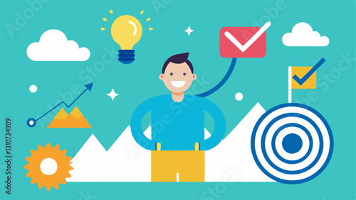 Goal Setting A character writing down goals on a whiteboard with a mix of challenging and realistic goals showing the importance of setting achievable objectives instead of