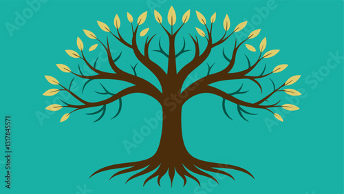 Tree with Roots A tree with deep roots and vibrant leaves where the roots represent a persons passions and values showing how a strong purpose nourishes life satisfaction as it