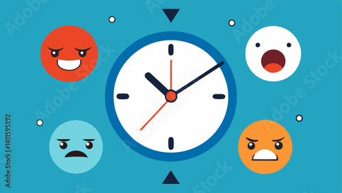 A Clock with Different Faces Illustrate a clock with different facial expressions some showing stress and panic while others are calm and relaxed representing time perception.
