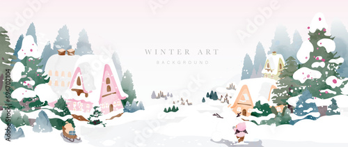 Winter background vector. Hand painted watercolor drawing for Christmas and Happy New Year season. Background design for invitation, cards, social post, ad, cover, sale banner and invitation.