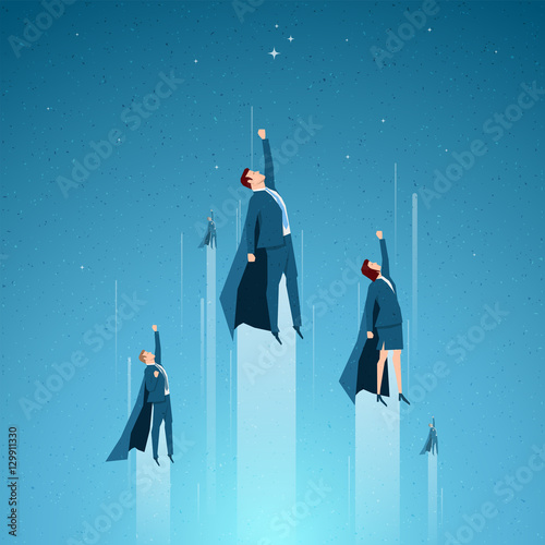 Flat vector illustration. Man and woman in office clothes with superhero cape. Vector illustration