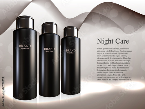 Skin toner cosmetic products ad. Vector 3d illustration. Skin cream bottle template design. Face and body make up tone cream
