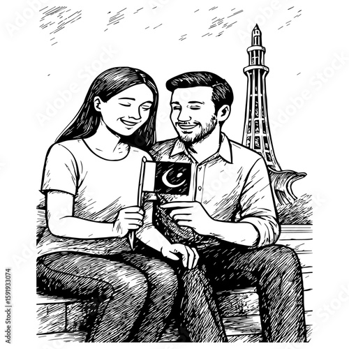 Minimalist Digital Line Art Illustration of Minar-e-Pakistan in Lahore, Pakistan – Iconic Historical Monument in Modern Architectural Outline Design