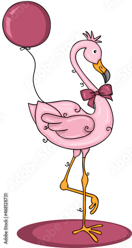 Cute flamingo with crown, ribbon, and ranunculus flower