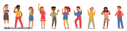 Cartoon flat hand count gesture set with fingers counting numbers. Collection features isolated palm positions, ideal for education and math concepts in a fun style.