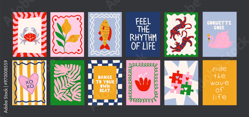 Modern Merry Christmas Postcard Collection Set: Holiday Greetings Grunge Minimal Vector Art Colorful Vibrant