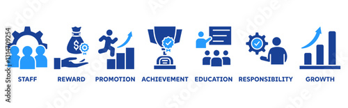 Employee Motivation icon set illustration concept with icon of staff, reward, promotion, achievement, education, responsibility, growth