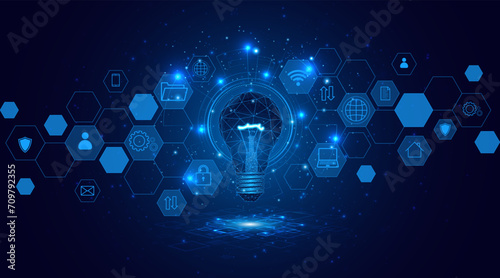 Electric or creative light bulb. Global internet connection concept for business. advanced digital technology