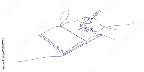 continuous line drawing of hand writing in diary or journal, line art vector illustration