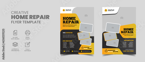 a4 Construction Flyer Design Template,Home repair service flyer Vector and editable flyer design