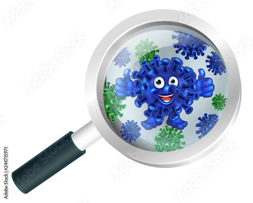 Probiotic background. Magnifying glass with probiotics on blue background. Human health background. EPS10 vector