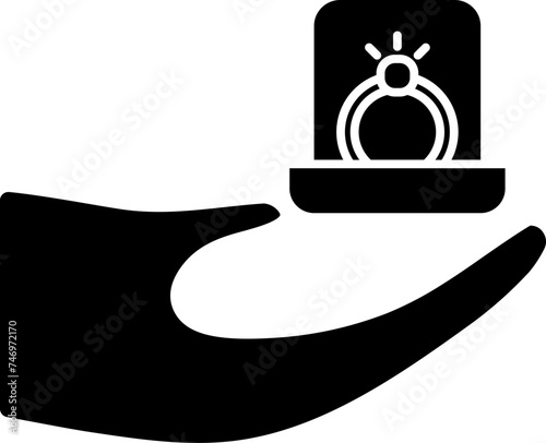 Golden engagement ring in open box on black background. Elegant jewelry or beautiful accessory for marriage proposal and wedding ceremony. Expensive luxury romantic gift. Colorful vector illustration.