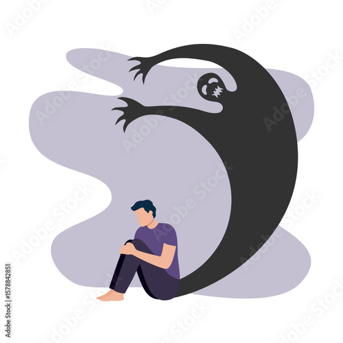 Mental health set. Characters with mental disorder fight against stress, depression, emotional burnout and other psychological problems. Psychotherapy metaphor concept. Vector flat illustration.
