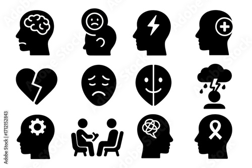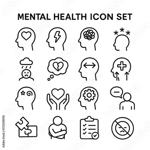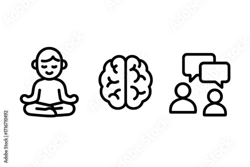 Discover essential mental health icons representing well-being, therapy, and emotional balance for modern wellness concepts