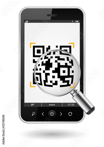 Scan QR code flat icon with phone. Barcode. Vector illustration.
