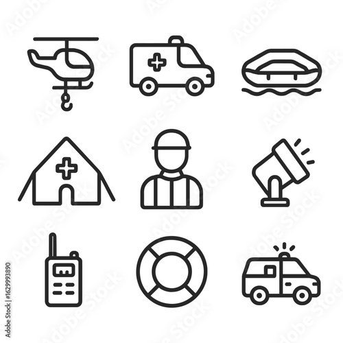 Rubber Boat icon set. Editable Stroke Icon Collection. Includes rubber boats icons and More. Outline icons vector collection.