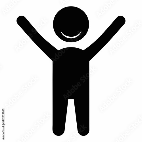 man raised his hand, greeting, stick figure icon, people waving their hands