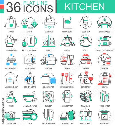 Kitchen appliance UI icons for food preparation apps, restaurant interfaces