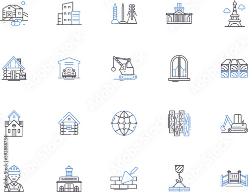 Remodeling and renovation outline icons collection. Remodelling, Renovation, Refurbishment, Reconstruction, Redesign, Restoration, Updating vector illustration set. Modernizing, Retrofitting