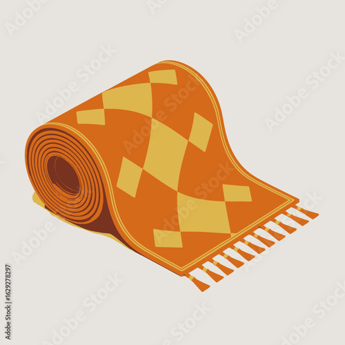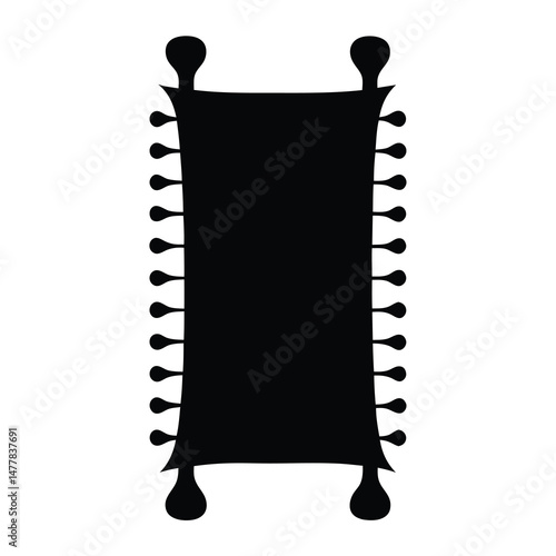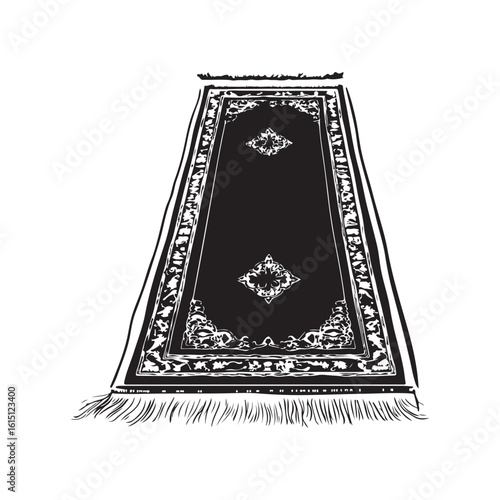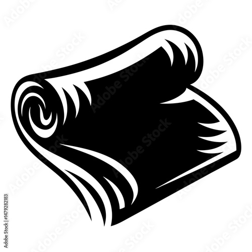 Monochrome stylized illustration of a partially unrolled carpet or rug design