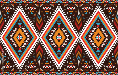 Geometric ethnic native patterns embroidery. Design for background, wallpaper, fabric, clothing, carpet, scarf, Decorative, rug and wrapping. Decorative Abstract. Native American motifs.