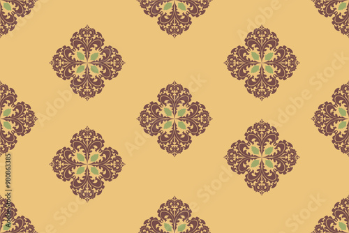 Damask seamless floral pattern, brown and light brown ornament, vector illustration elegant for textile, wall paper, bedding, curtains, cushion cover, rug, scarf,    upholstery fabric, vintage design