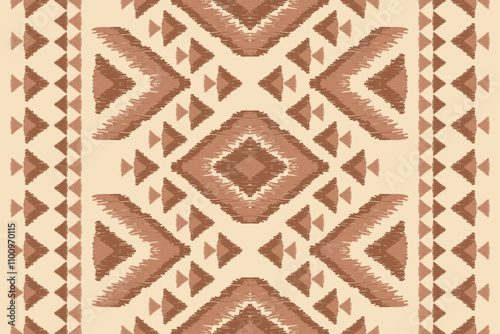 Geometric ethnic seamless pattern in tribal. Brown rug Ikat style. folk embroidery. American, Mexican Design for background, clothing, carpet, textile, batik.