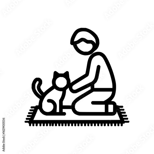 Minimalist cat illustration sitting gracefully on a rug soft color palette