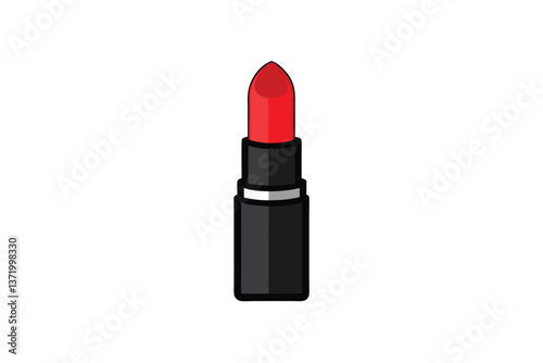 Red lipstick in case in a cartoon style. Vector illustration of luxury lipstick in black and silver tube isolated on white background. Lipstick for applying make-up. Cosmetic decorative product.