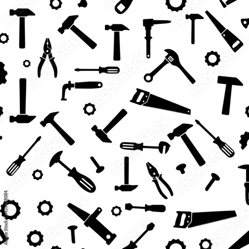 Silhouette collection of carpentry tools: saws, planes, clamps, and chisels