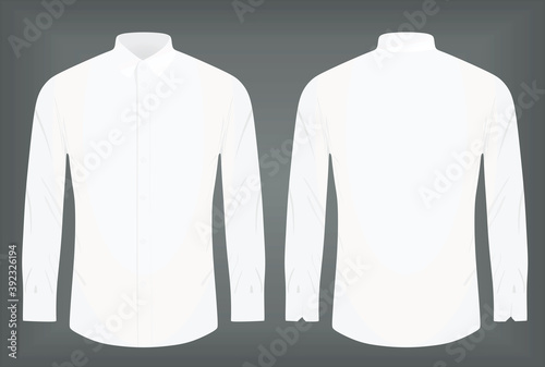 Blank white long sleeve shirt template. Front and back views. Photo-realistic vector illustration.