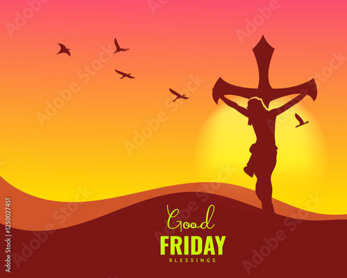 Happy Good Friday Illustration with Christian Holiday of Jesus Christ Crucifixion in Flat Cartoon Hand Drawn for Web Banner or Landing Page Templates