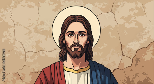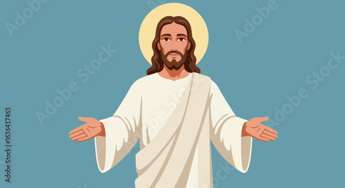 Jesus Christ silhouette smiling face with long hair and halo Christianity religion vector design salvation grace hope ai ep