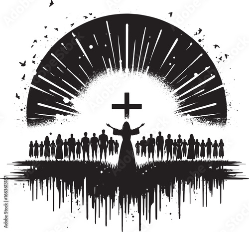 Silhouetted figure with a spiritual mood, representing salvation against a radiant halo background.Jesus, God.