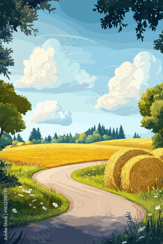 Fall Hay Bale Maze, watercolor clipart vector, isolated on a white background.