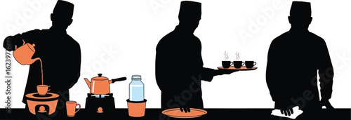 Silhouettes of people cooking and serving food activities occupation concept vector