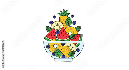 Blue bowl filled with fluffy cooked rice illustration. Single serving of plain white rice in cartoon vector design.